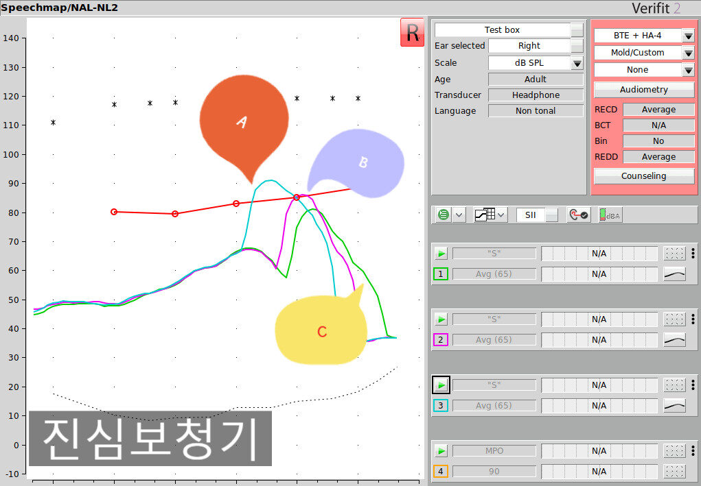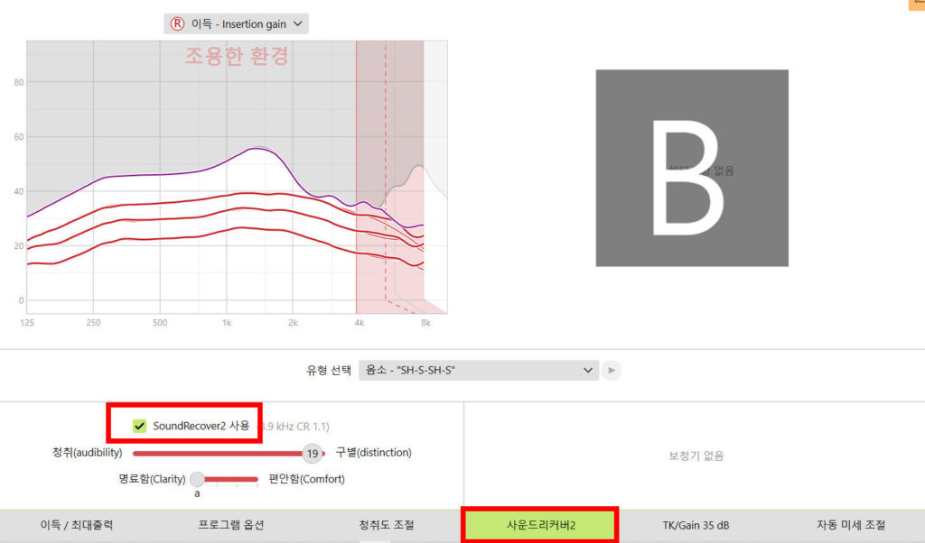 1. 주파수 압축을 논하기 전에, 현재 피팅에서 고주파 말소리가 실제로 어디까지 들리는지(MAOF) 를 먼저 확인해야 합니다.